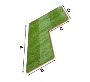 If you are measuring an irregularly shaped area you will almost certainly find it easier to break the area up into smaller shapes in order to assist you with your calculations. After you have followed our ‘how to measure lawn’ guide and the job has been done, we further recommend that you add 5% to the final area to cover wastage and trimming to fit edges.