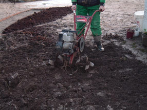 Soil needs to be turned over to a depth of 15cm. This can be achieved by either digging over the area or by using a rotavator (available at hire shops)